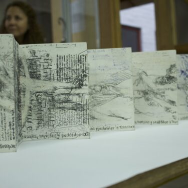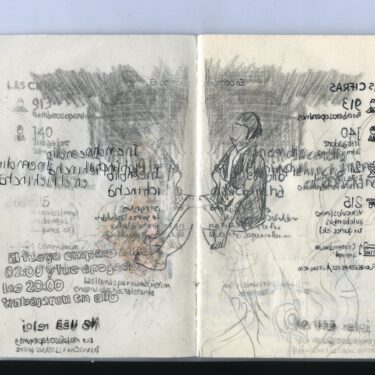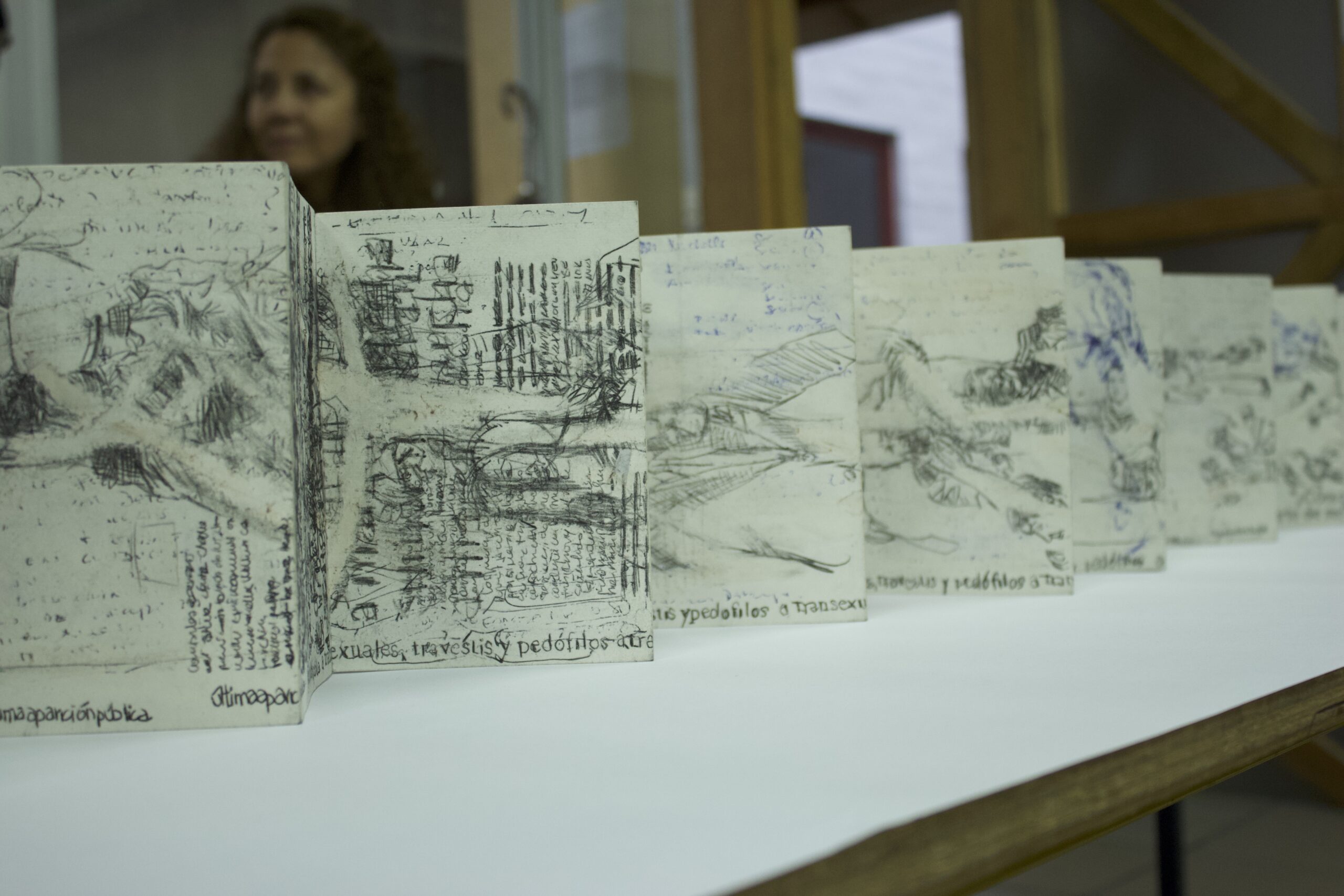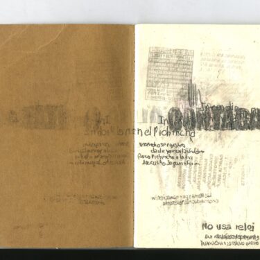 Mi acción incorpora un ejercicio simultáneo de registro de las acciones que los artistas realizaron en la ciudad. El registro que realicé de los performances de los artistas consistió en tachar, subrayar, reescribir palabras o imágenes en las hojas de todos los periódicos publicados ese día. La actividad de registro se desarrolló en los momentos en que suspendía la lectura de la prensa de aquel día, los períodicos se usaron para realizar dibujos a manera de registros de las acciones de los otros artistas, luego se guardaron, cosieron y se los uso para acciones posteriores en el 2017-18.